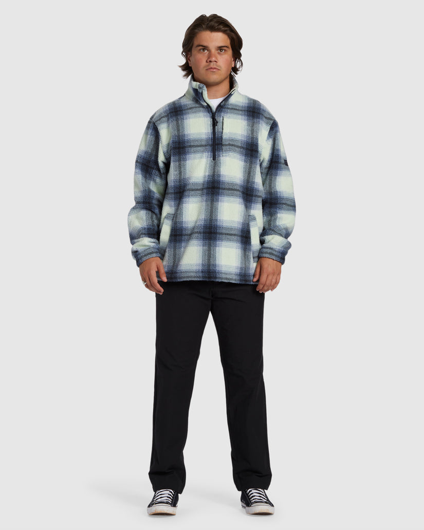 Take your adventure to new frontiers with Billabong's Adventure Division Boundary Half-Zip Mock Neck Fleece. Made of plush Polar Fleece that's crafted with partially recycled fibers, this comfy pullover blends function and style with its chest zip pocket, bungee waistband, and bold print design.
