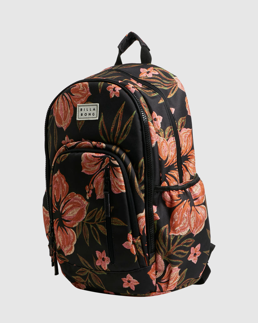 Made with durable recycled polyester, the Roadie backpack has plenty of pockets for your school-work-travel daily needs. This roomy knapsack features two main zippered compartments, stretchy side pouches for water bottles, a padded laptop compartment, plus comfortable shoulder straps and a reinforced back panel to let you travel in comfort.